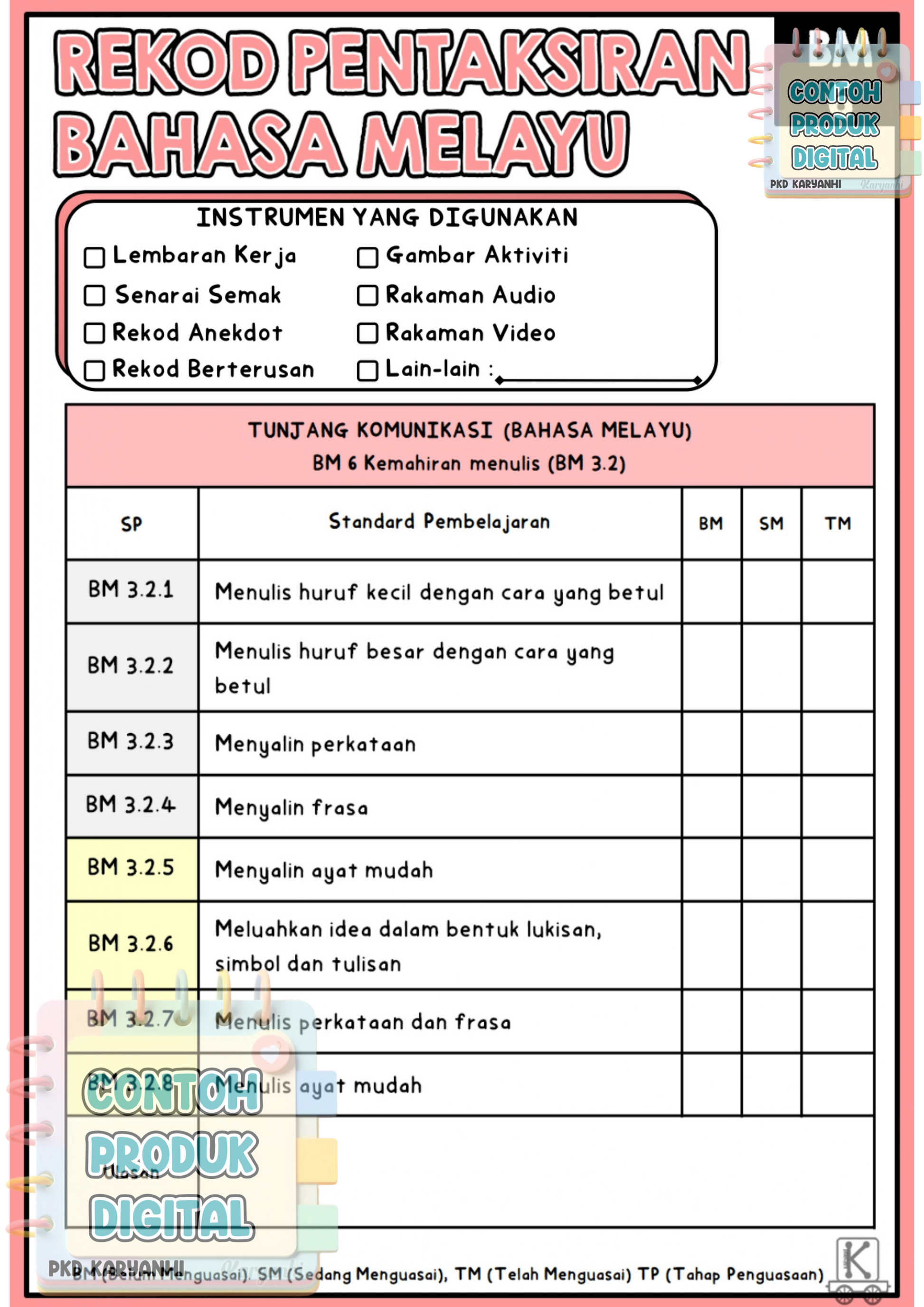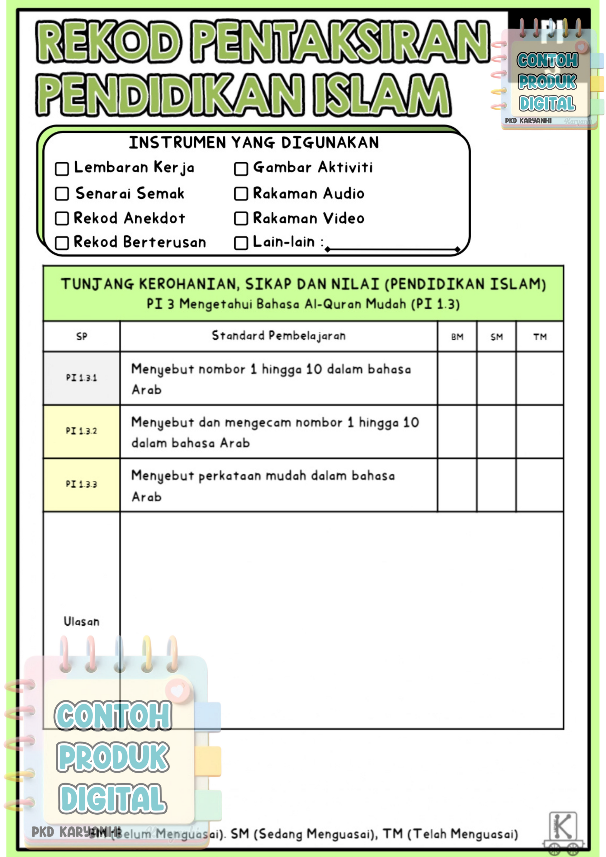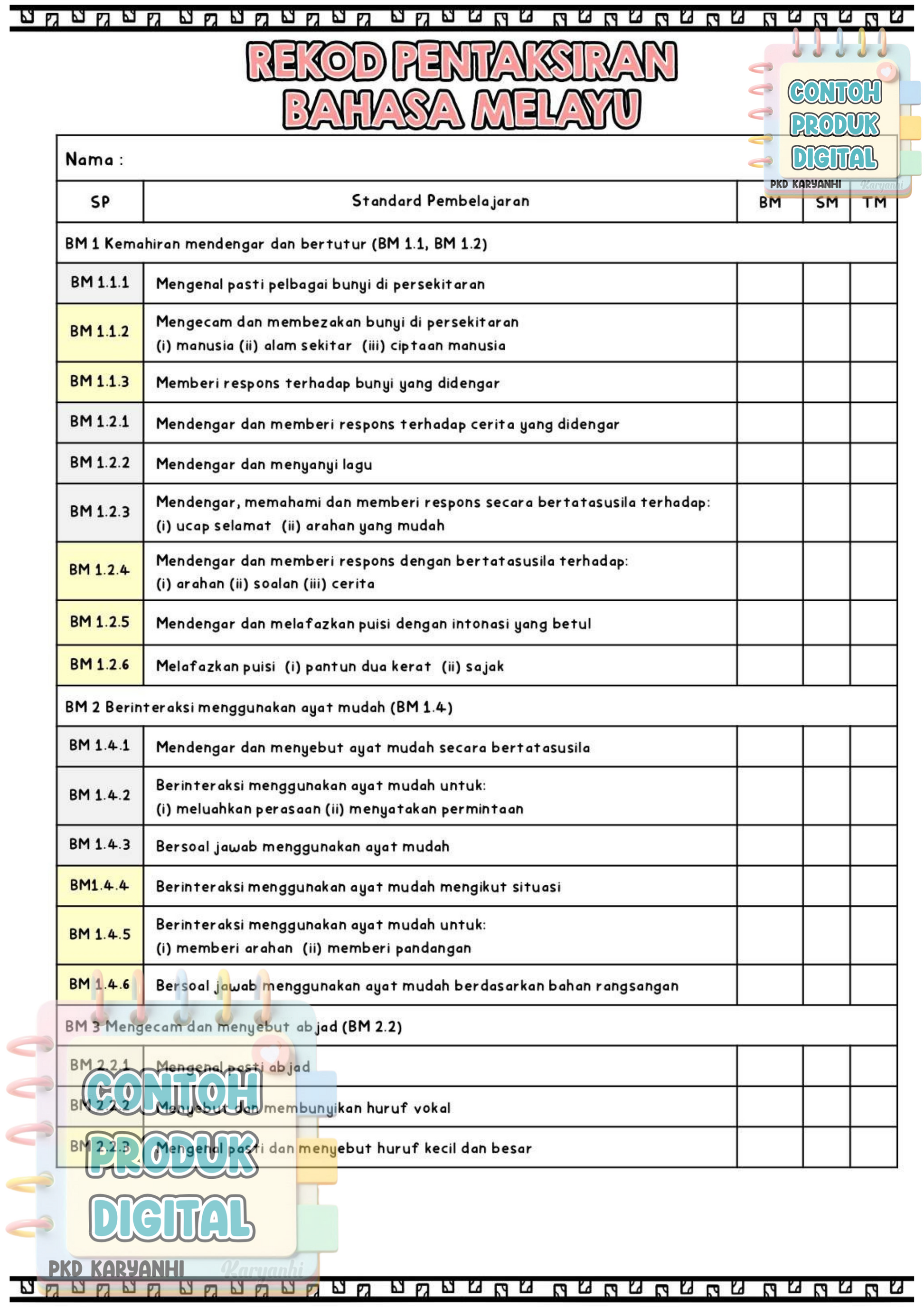 Nota : Ahli Channel Pentaksiran KaryaNHI tidak perlu dapatkan buku rekod ini. Bahan ini sudah dimuatkan dalam private Channel Pentaksiran.