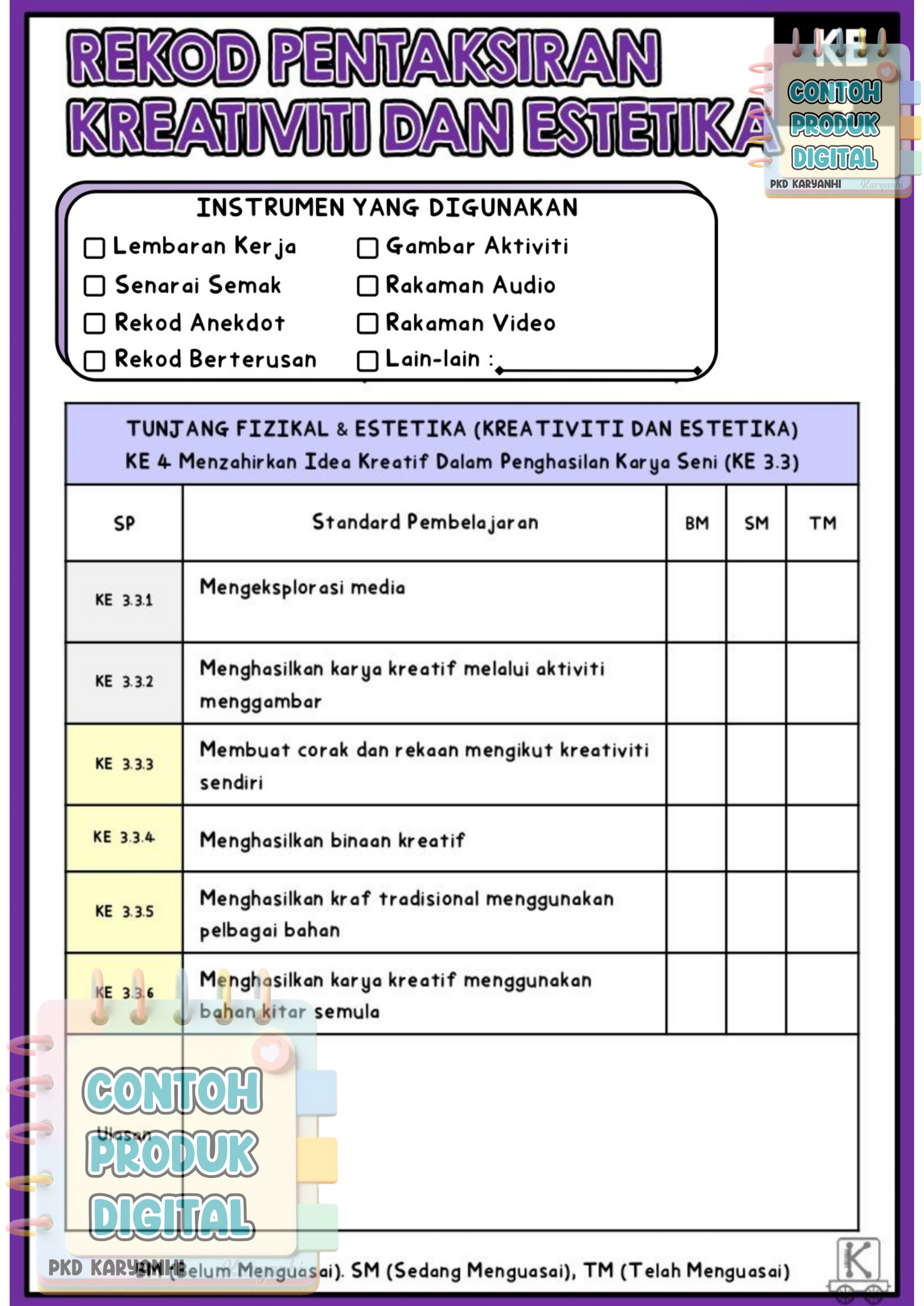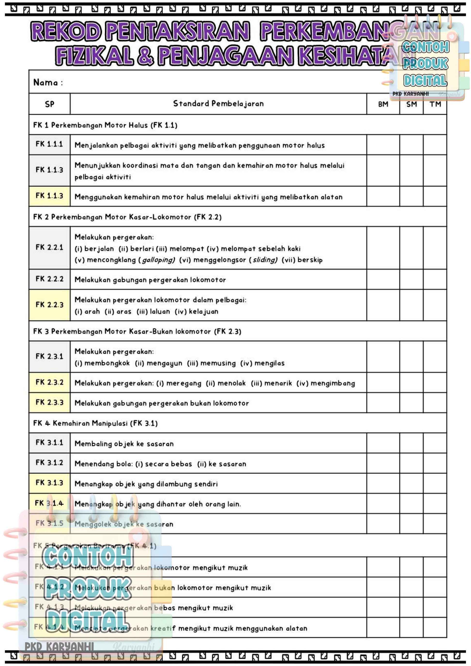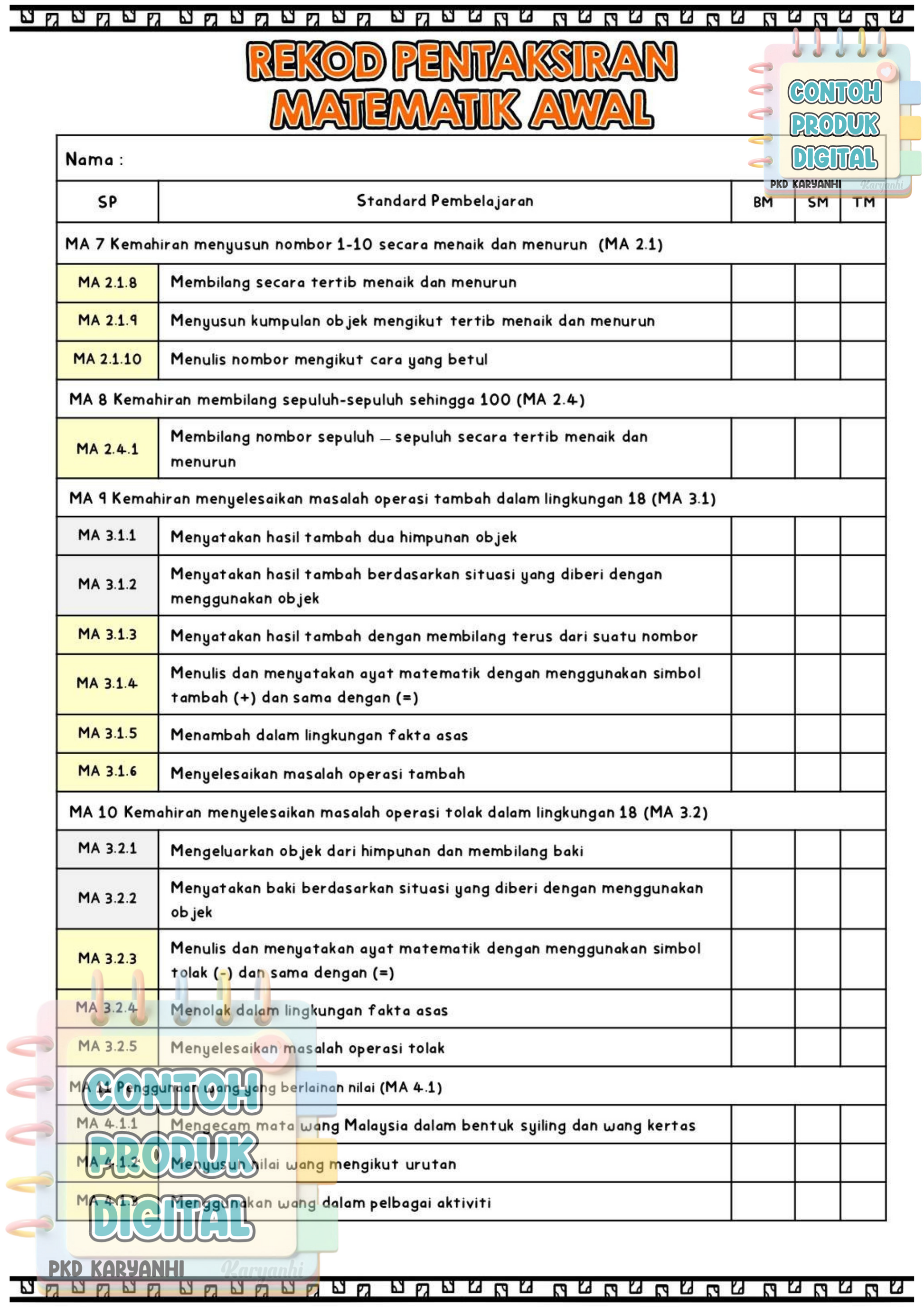 Nota : Ahli Channel Pentaksiran KaryaNHI tidak perlu dapatkan buku rekod ini. Bahan ini sudah dimuatkan dalam private Channel Pentaksiran.
