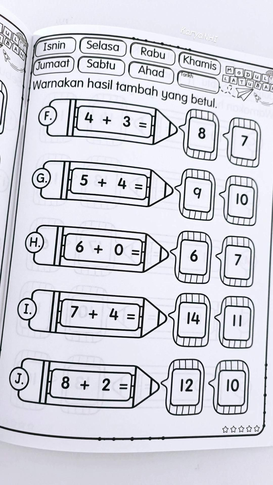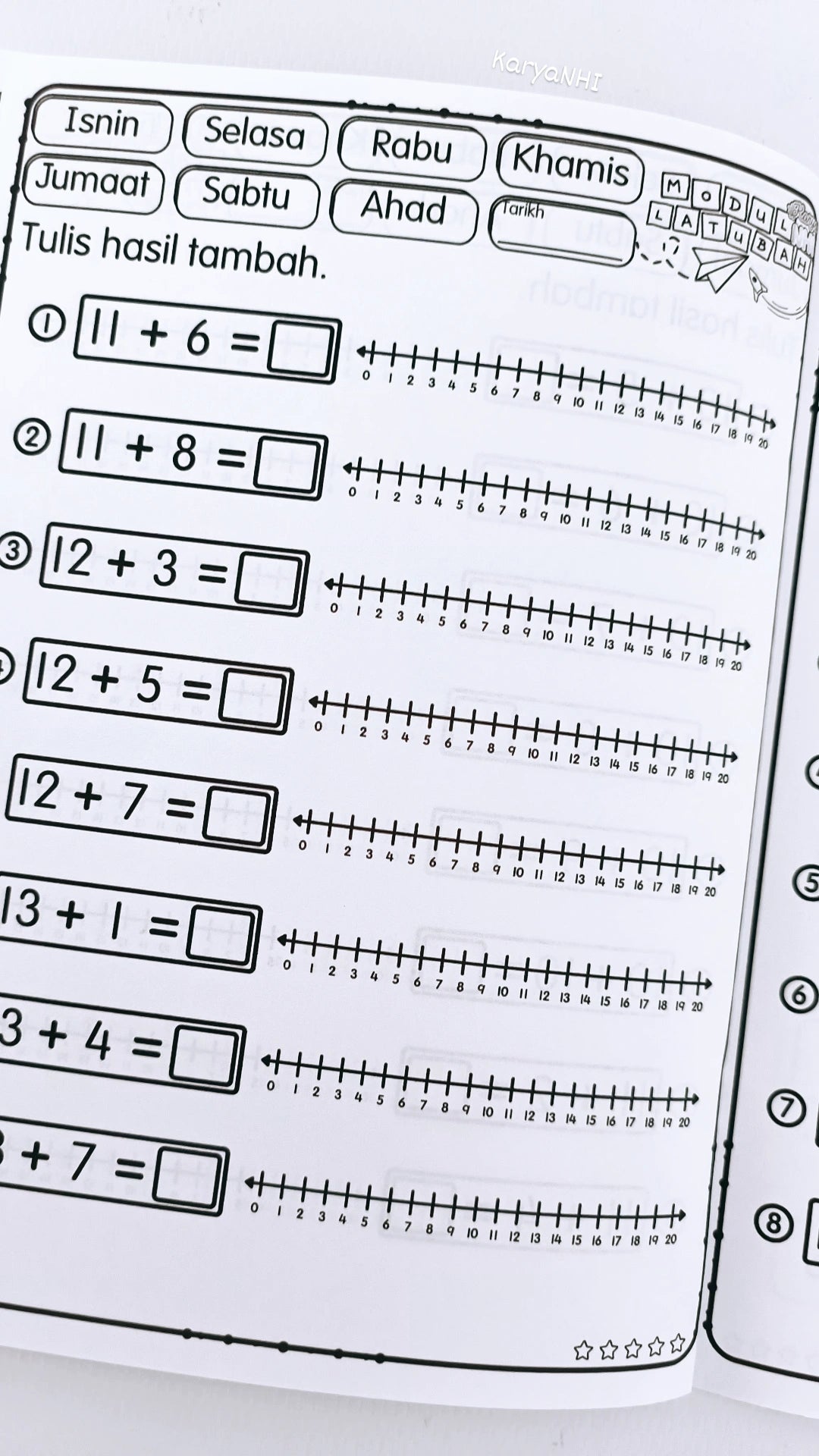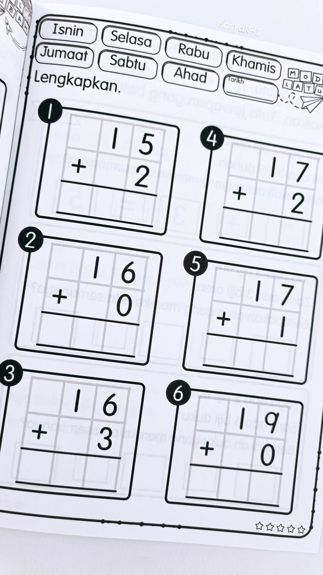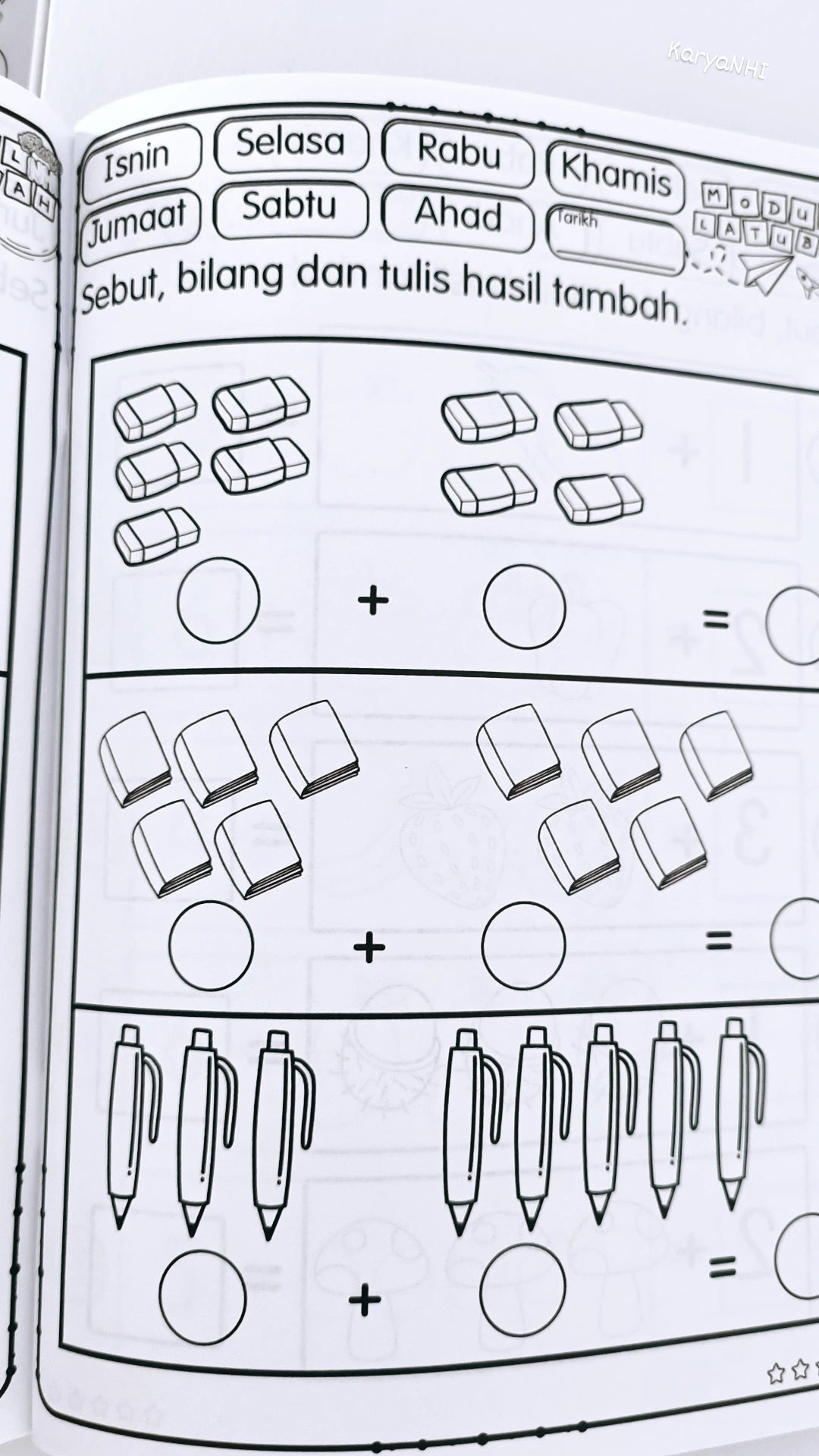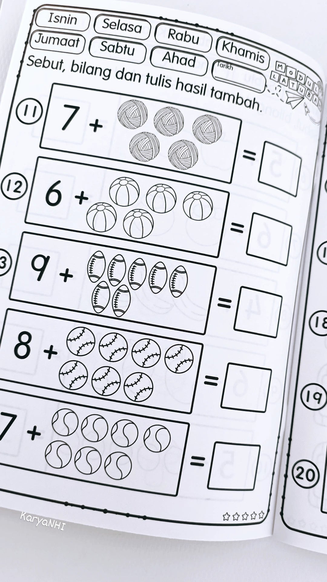 💌 Merangkumi beberapa jenis latihan berkaitan operasi tambah dalam lingkungan 10, 18 dan dalam lingkungan 20.