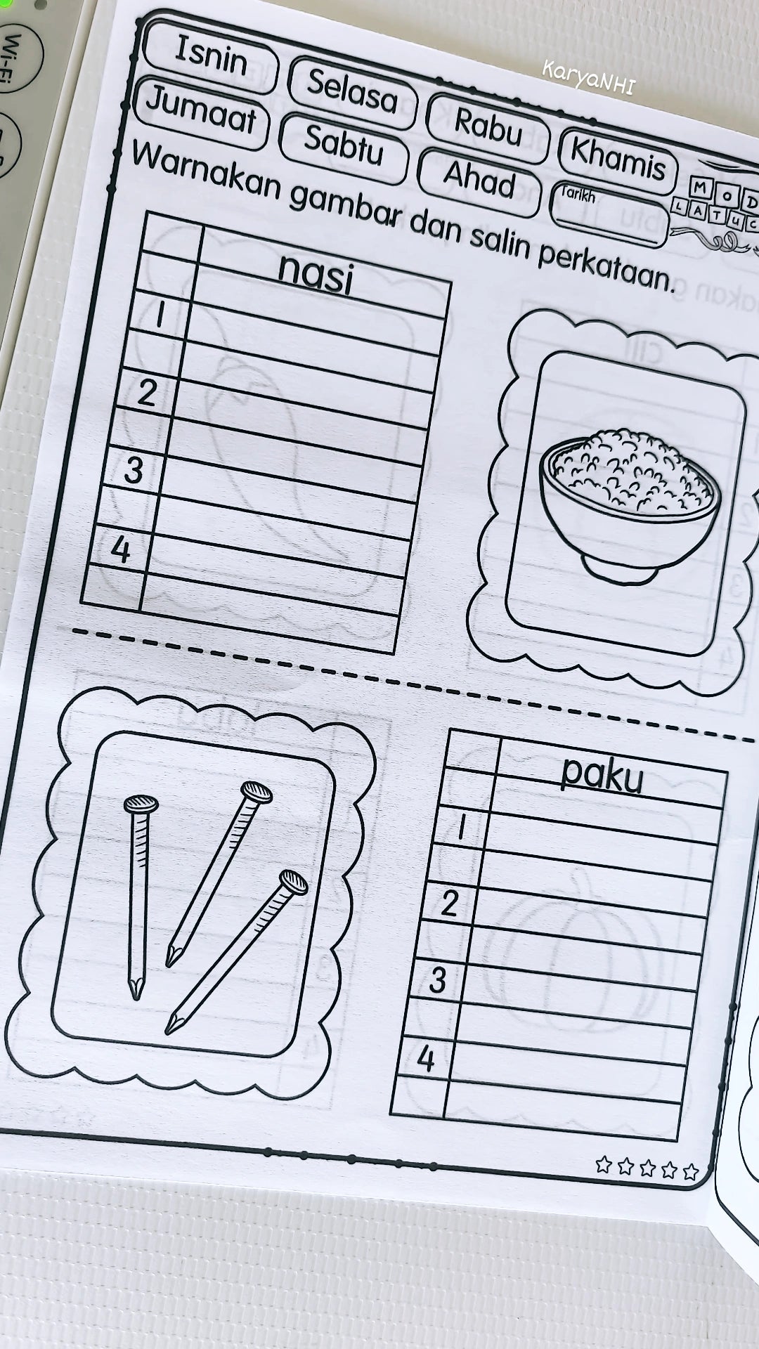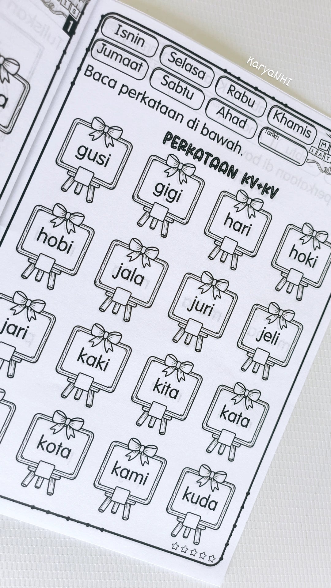 ✔️ Latihan menulis perkataan kv+kv+kv berdasarkan gambar.