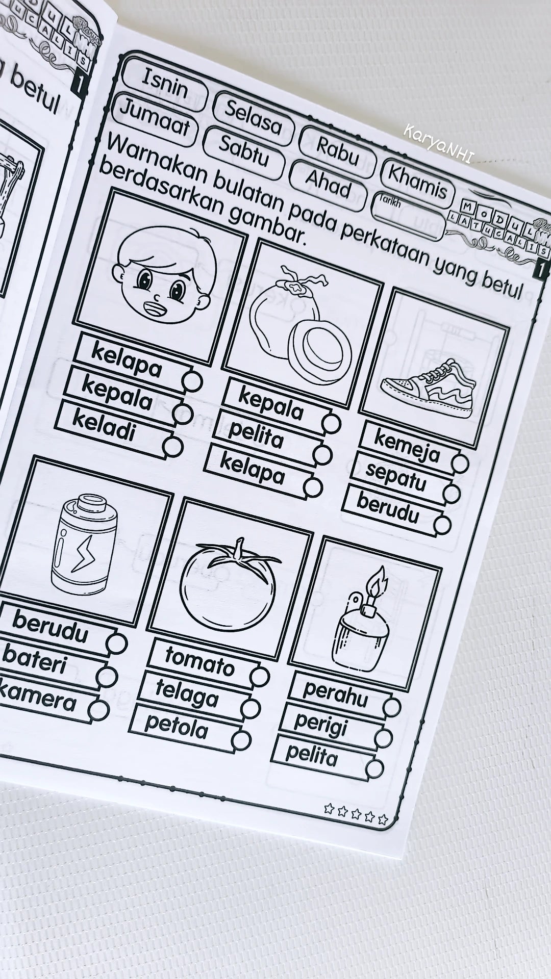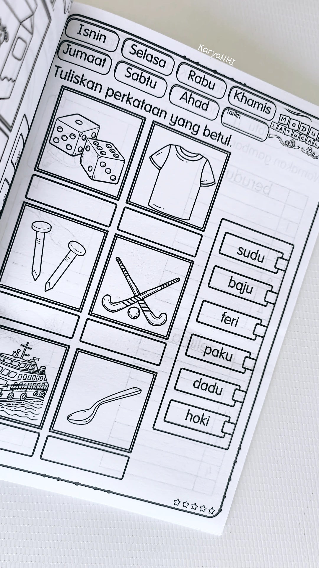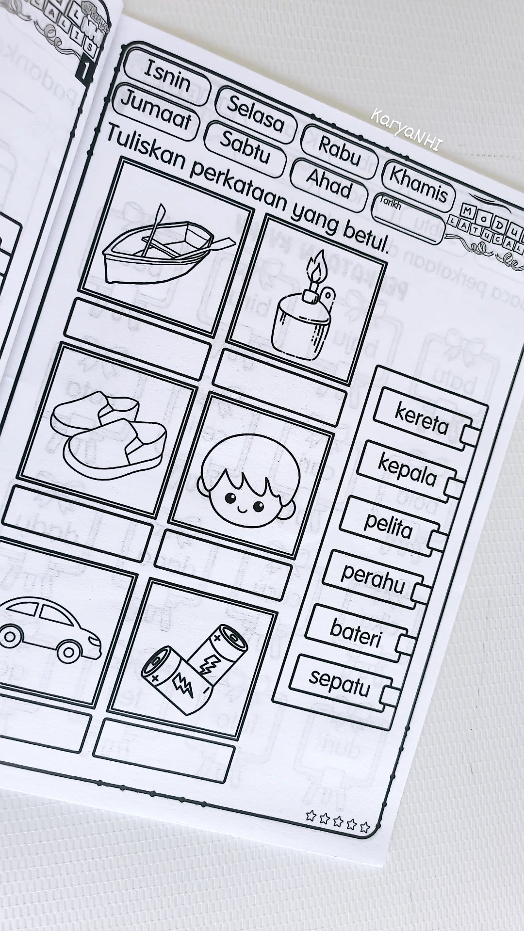 ✔️ Latihan menulis perkataan kv+kv berdasarkan gambar.