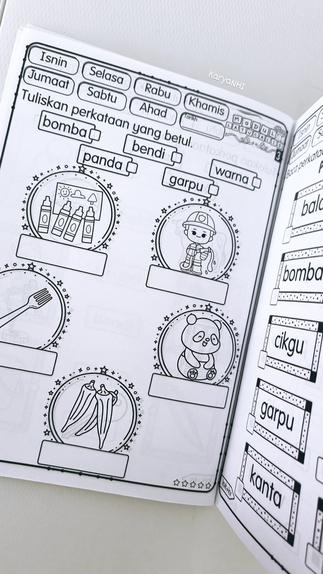 ✔️ Latihan menulis perkataan kv+kvk berdasarkan gambar.