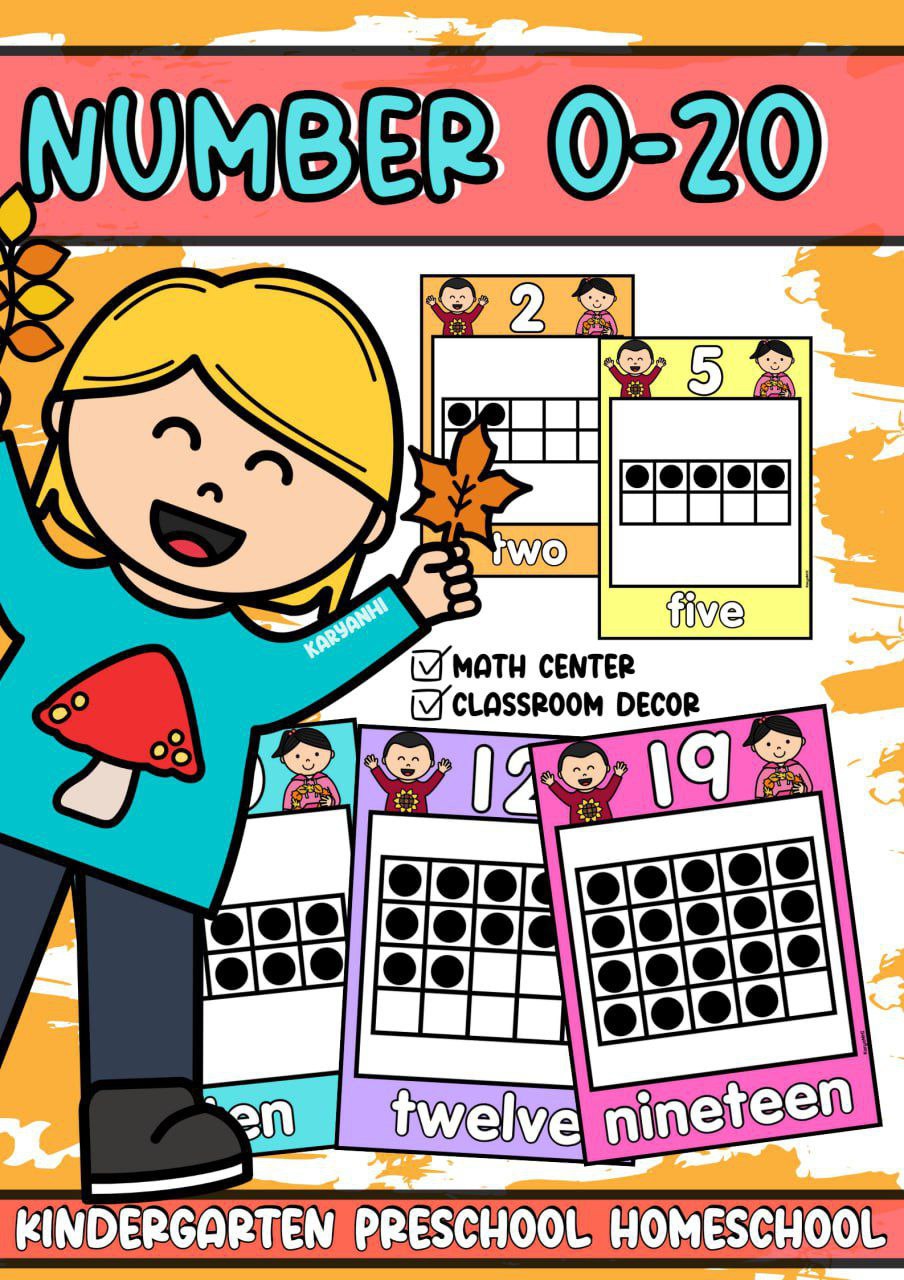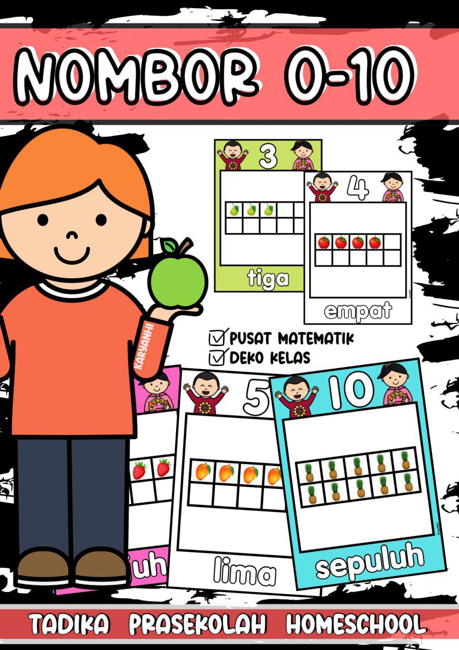 3. Poster Nombor (0-10) hitam putih + buah / warna-warni + buah